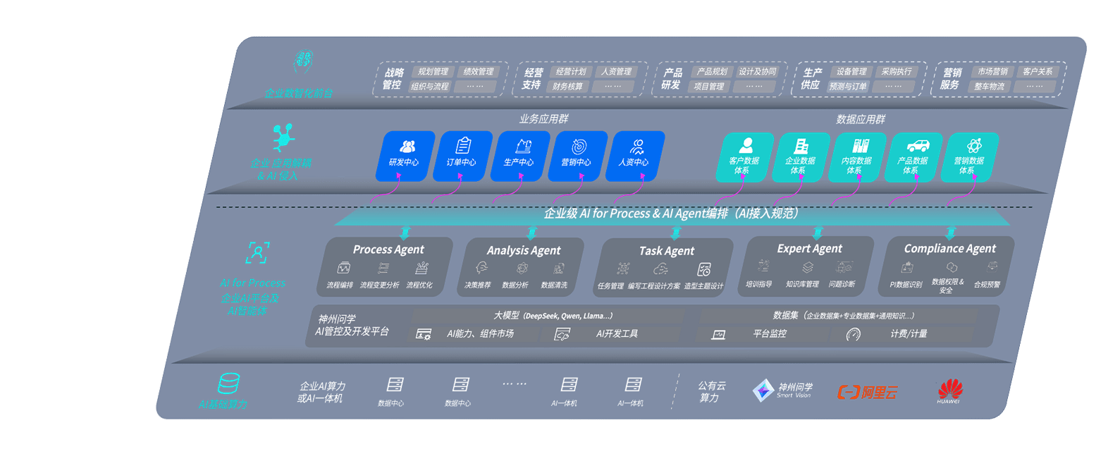 端到端的一站式AI工作空间深度融合了从企业战略规划到日常经营的全流程业务板块,,,,定向解决车企内部领域多、、部门多、、链条长、、场景碎片化等难题,,支持车企快速构建以AI为核心的生产力写作体系,,,,实现任务执行与AI能力的无缝集成与交互